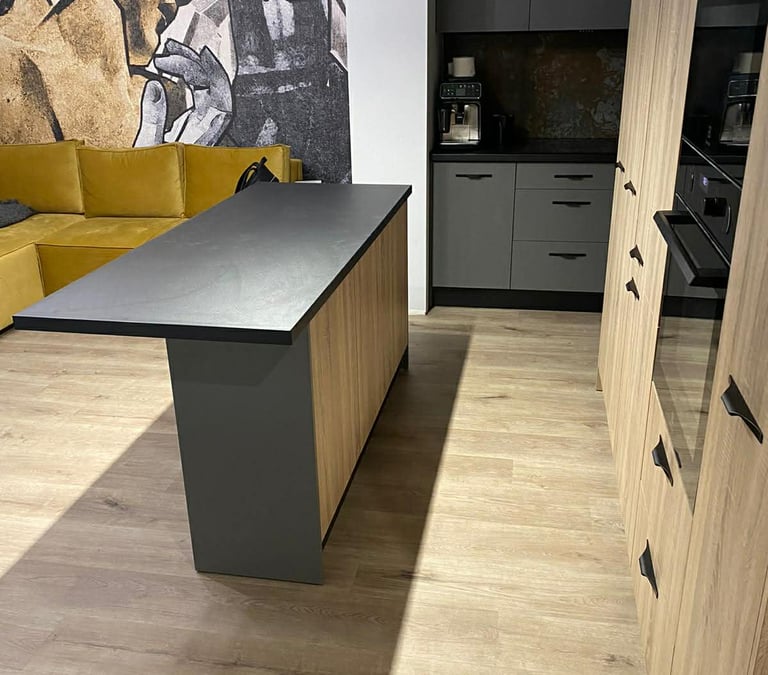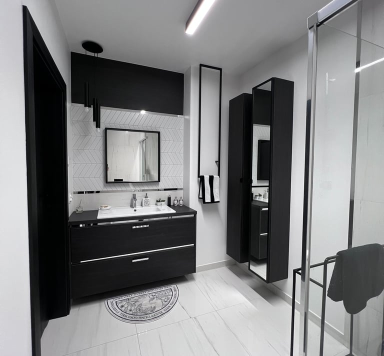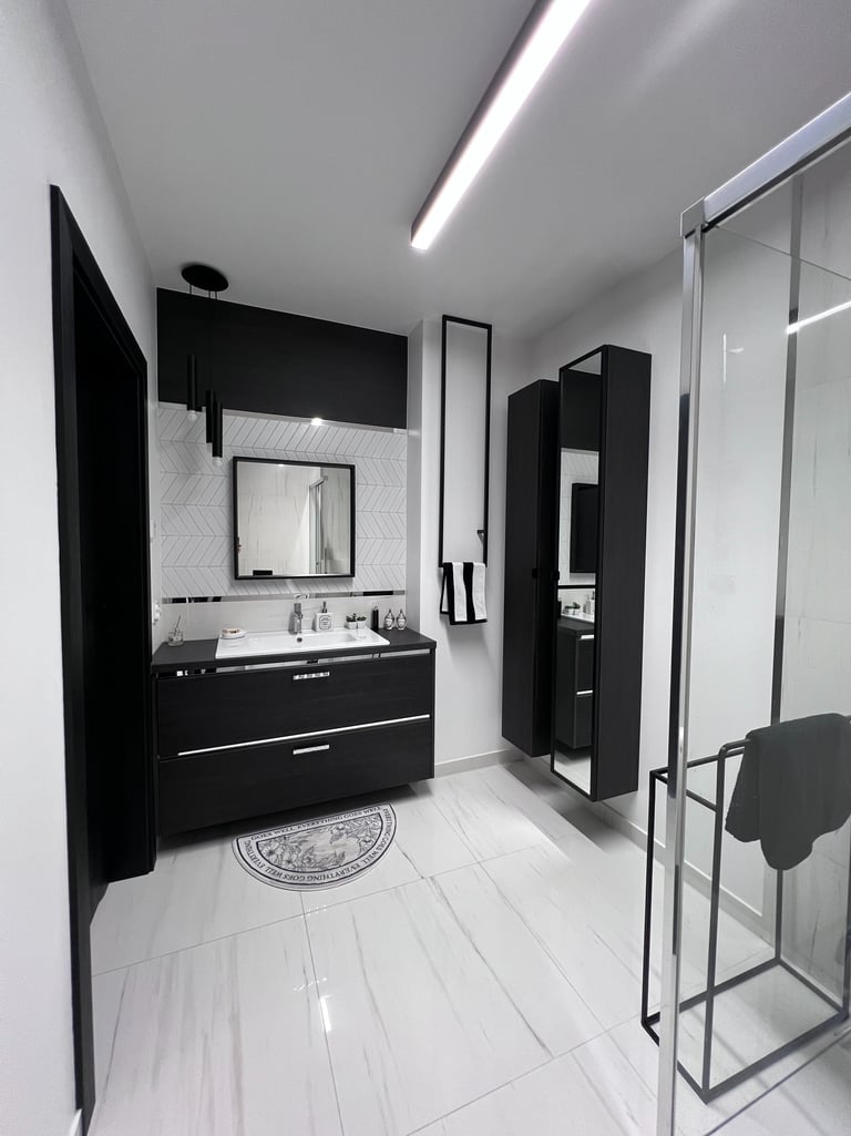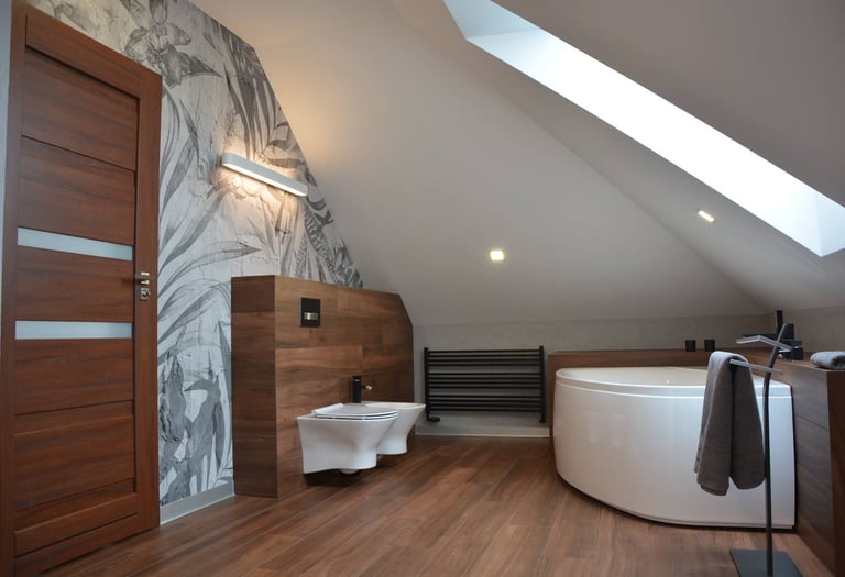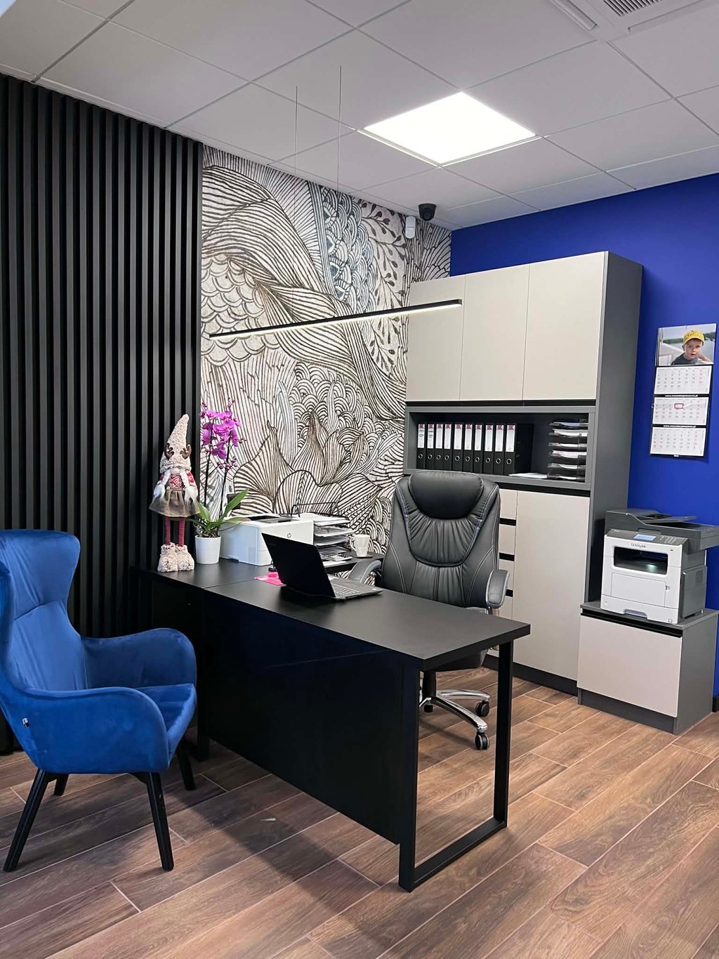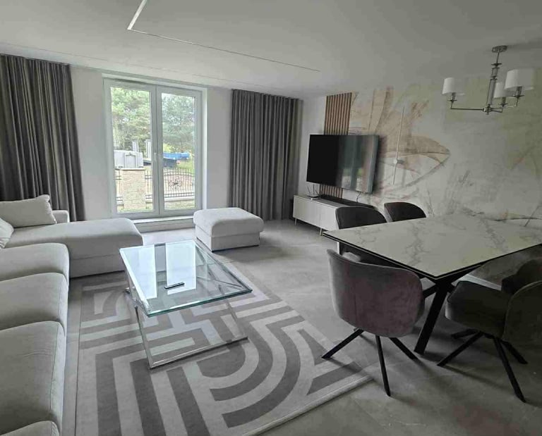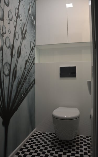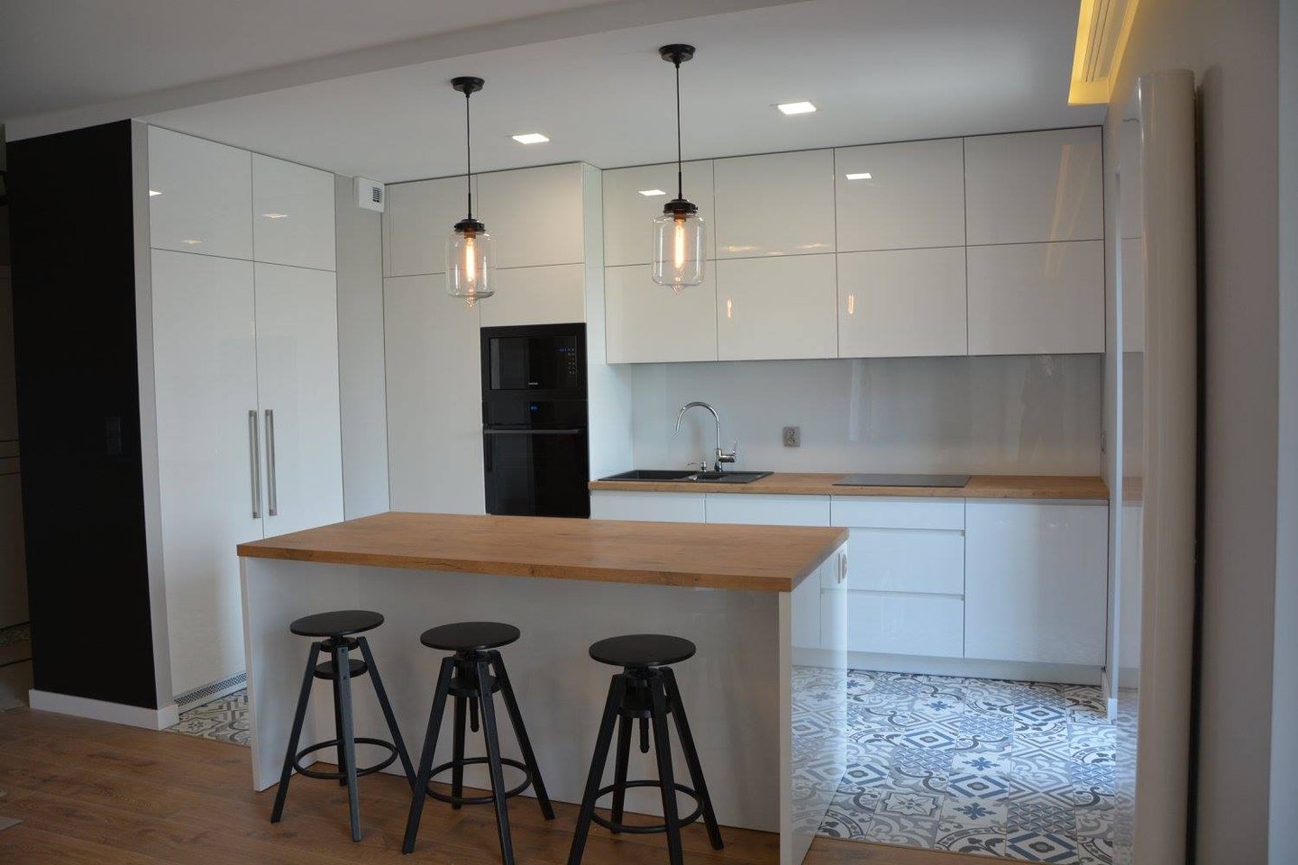 Za nowoczesne wnętrze z pomysłem wykorzystania nieoczywistych elementów jak namiastka murala w domu oraz oświetlenie sceniczne przy pokoju dziennym.